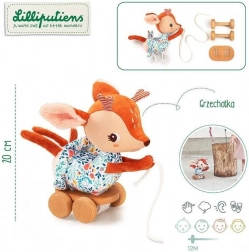 Plišana igračka na povlačenje Jelen Stella belgijskog brenda Lilliputiens savršen je pratitelj za prve korake vašeg djeteta. Igračka predstavlja smeđe-ružičastu jelenicu Stellu u cvjetnoj haljinici, postavljenu na drvenu bazu s kotačićima. Pomaže razvijati motoriku i sigurna je za malu djecu.