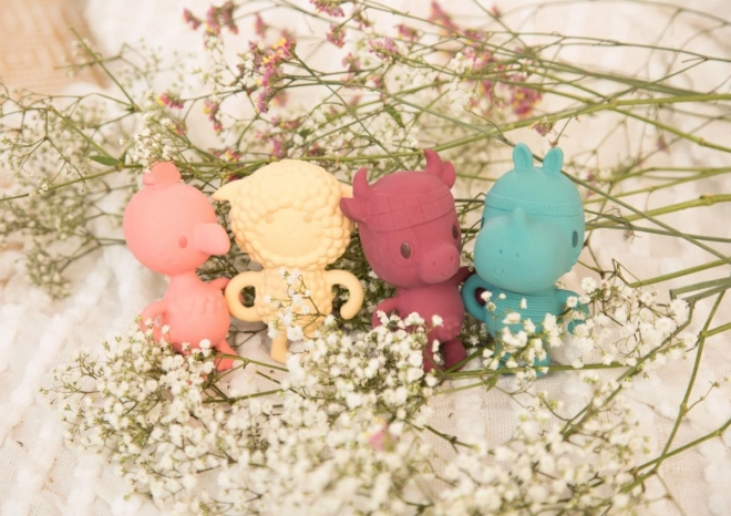 Meka površina od prirodne gume ugodno masira desni i pomaže umiriti nelagodu tijekom rasta prvih zubića.