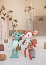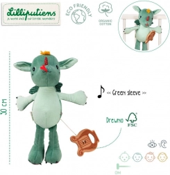 Plišani zmaj Joe brenda Lilliputiens osmišljen je kao savršen prvi prijatelj za vaše dijete. Sa svojom visinom od 32 cm i drvenom lirom služi ne samo kao igračka, već i kao glazbeni dodatak koji nakon povlačenja reproducira tradicionalnu melodiju 'Green Sleeves'. Ovaj glazbeni zmaj ima male kandžice, karirana krilca i sladak izgled s izraženim detaljima koji potaknu dječju maštu.