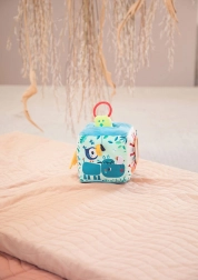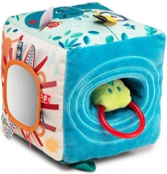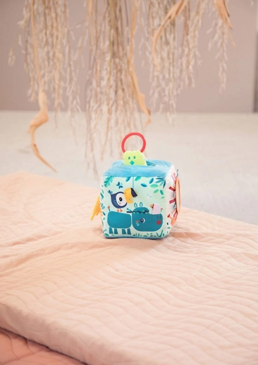 Kocka potiče osjetilnu percepciju, finu motoriku i koordinaciju ruke i oka, a dodatno donosi olakšanje djeci u razdoblju nicanja zubića. Savršen poklon za najmlađe, spreman za sigurnu i zabavnu igru.