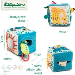 Krenite u avanturu s kockom Džungla belgijskog brenda Lilliputiens. Ova mekana i interaktivna igračka sadrži: