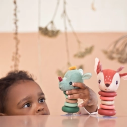 Jelenak Stella je nevjerojatno zabavna igračka, koja se uz najmanji dodir zavrti. Njegova tekstilna glava i certificirani drveni krugovi osiguravaju sigurnost i kvalitetu. Prikladno za djecu od 6 mjeseci, što je čini savršenim suputnikom za najmlađe.