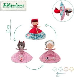 Zaljubite se u lutku koja kombinira tri lika u jednu igračku - Crvenkapicu, baku i vuka. Dovoljno je samo okrenuti lutku i već se pojavljuju različiti likovi iz popularne bajke. Lutka je izrađena od mekog materijala, koji omogućuje manipulativnu igru i pruža sigurno igranje zahvaljujući blagoj površinskoj obradi.