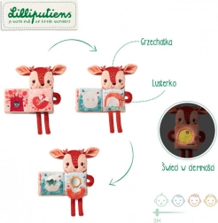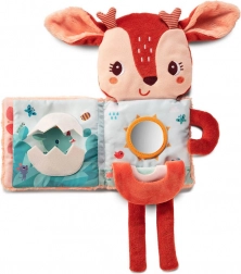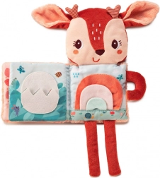 Interaktivna maziva knjižica s likom jelenke Stelle od Lilliputiens idealno je prvo „čitanje“ za bebe od 3 mjeseca. Kombinira plišanu igračku i tekstilnu knjižicu s iznenađenjem na svakoj stranici: šuškanje, zvečku, savijivo ogledalce i čak element koji svijetli u mraku. Razvija vid, sluh, dodir, potiče opuštanje i gradi ljubav prema knjigama.