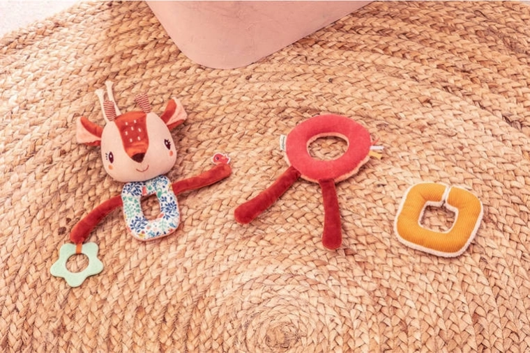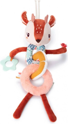 Prva senzorička igračka za bebe brenda Lilliputiens: aktivni lanac za kolica s likom srne Stelle. Nudi različite teksture, zvečku, šuškave elemente i meku grizalicu u obliku zvijezde. Zahvaljujući magnetskom prstenu članke je lako spojiti i razdvojiti. Odlično za razvoj fine motorike i zabavu u pokretu – na kolicima, u autosjedalici ili nosiljci.