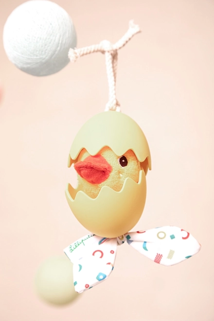 Zahvaljujući silikonskoj ljusci jaje je ugodno na dodir i može se lako čistiti jednostavnim brisanjem. Praktična petlja omogućuje brzo vješanje gdje god vam treba. Kombinacija tekstila i silikona potiče senzorni razvoj i finu motoriku.