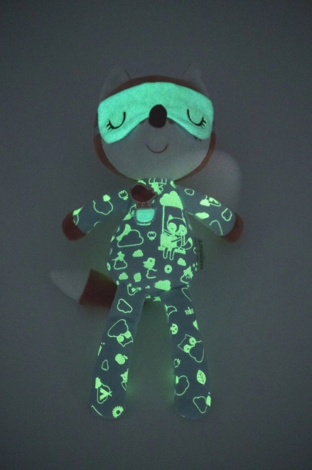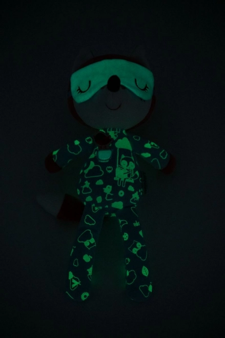 Slatka plišana pratiteljica za krevetić za bebe i malu djecu. Lisica Alice ima svjetleću pidžamu i masku za spavanje koje nakon izlaganja svjetlu u mraku nježno sjaje. Umirujuće svjetlo pomaže djeci zaspati i osjećati se sigurno. Igračku je moguće prati u perilici rublja na 30 °C na nježnom programu. Dimenzije otprilike 19 × 10,5 × 30 cm.