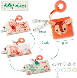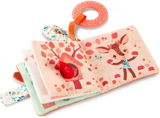 Prva mekana knjižica za bebe iz kolekcije Stella brenda Lilliputiens spaja nježnu plišanu navlaku sa slatkim licem lanice, šuškavim stranicama, različitim teksturama i teksturiranim grizalom za olakšanje pri nicanju zubića. Podržava senzorni razvoj, finu motoriku i maštu, lako se pričvršćuje na kolica zahvaljujući trakici sa čičak-zatvaračem te je idealna kao poklon za bebe od 6 mjeseci nadalje.