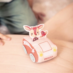 Autić je osmišljen tako da potiče imaginativnu igru i zabavu. Dimenzije autića su 9 x 6,5 x 10,5 cm. Izrađen je od 100% poliestera, čisti se samo vlažnom krpom.