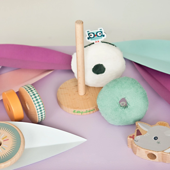 Ova razigrana motorička igračka donosi djeci radost otkrivanja oblika i materijala. Varijabilno slaganje potiče maštu te uči strpljenju i koncentraciji. Zahvaljujući kombinaciji drvenih i tekstilnih elemenata, piramida je ugodna na dodir i sigurna za male ručice.