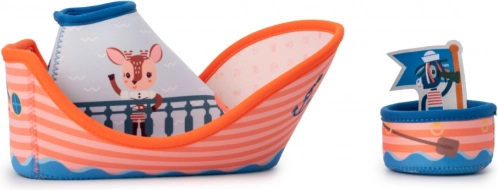 Krenite na maštovitu plovidbu s najhrabrijim lavom Jackom i njegovom posadom. Šareno gusarsko plovilo od mekog neoprena dizajnirano je za udobno držanje malim ručicama i nudi sigurnu zabavu u kadi i uz bazen. Gornji dio broda s magarcem Ignaceom lako se odvaja – djeca tako dobivaju jedno veće i jedno manje plovilo za raznolike igre i razvoj mašte.