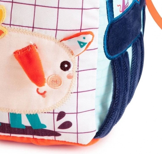Zahvaljujući raznim teksturama, džepiћima i detaljima (povlačenje, umetanje, izvlačenje) igračka potiče finu motoriku i koordinaciju oko–ruka, a istodobno stimulira vid, sluh i dodir. Prsten–grickalica na elastičnoj vrpci donosi olakšanje pri zubićima i lako se drži i malim ručicama.