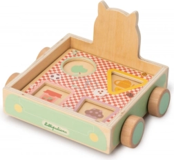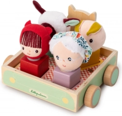 Otkrijte zabavna vučna kolica s likovima brenda Lilliputiens, u kojima vuk Ludvig vozi baku, Crvenkapicu, praščića i ovčicu. Ova pametna igračka kombinira vućna kolica, umetaljku i prepoznavanje oblika. Zahvaljujući čičak-traci, glavice likova lako se pričvršćuju na drvene oblike, što izvrsno razvija finu motoriku, koordinaciju oko–ruka i maštu djece.