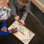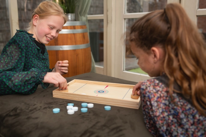 Stolni hokej i matematička igra za djecu nudi dvostruku dozu zabave! U prvom dijelu igre dva igrača imaju zadatak ubaciti svoje žetone na ciljano polje. U drugom dijelu odmjeravaju snage u stolnom hokeju sve dok jedan od igrača ne postigne sedam golova. Obje igre osmišljene su kako bi poticale koordinaciju oko-ruka i razvijale numeričke vještine.