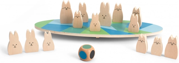 Otkrijte čaroliju igre Balansirajuća igra Zečići, koja vas stavlja pred zadatak održavanja ravnoteže i istodobno osigurava da vaši zečići i lisice ostanu na ploči. Igra je osmišljena tako da bude zabavna, a ujedno razvija fine motoričke vještine i koordinacijske sposobnosti. Igrači se izmjenjuju u bacanju kocke koja određuje na koju boju postaviti svoju figuricu.