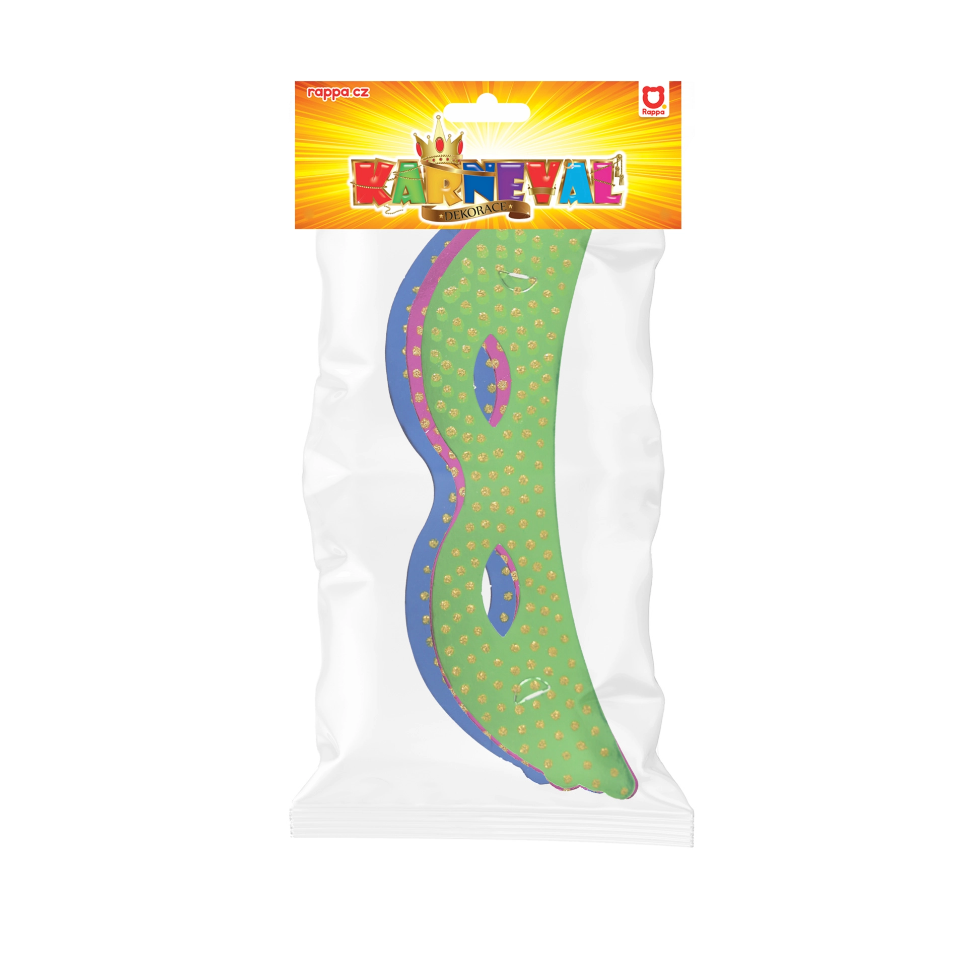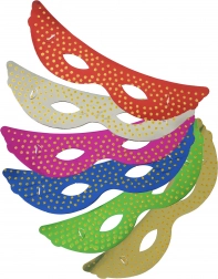 Stilne papirnate maske na gumici sa zlatnim sjajnim točkicama razveselit će svaku zabavu. Pakiranje sadrži 6 komada u raznim bojama – idealno za karneval, bal ili tematske proslave.