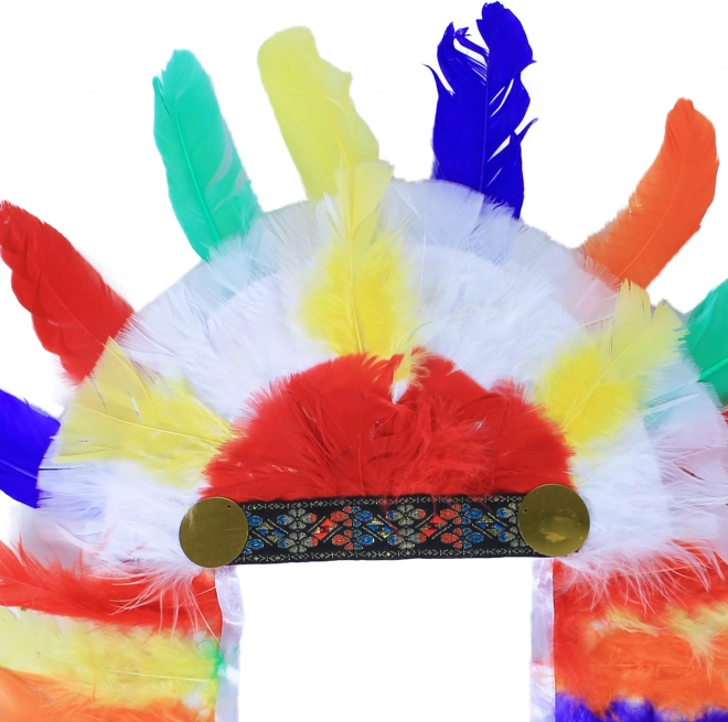 Šareno perje u crvenoj, plavoj, zelenoj i žutoj boji stvara neodoljiv karnevalski izgled i naglašava atmosferu indijanskog kostima.