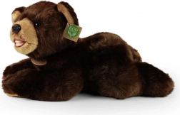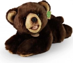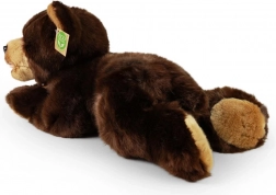 Preslatki ležeći plišani medvjedić veličine 32 cm oduševit će mekom površinom i kvalitetnom izradom. Zahvaljujući eko-prijateljskom punjenju od recikliranih PET boca siguran je i za najmlađe, mekan za maženje te ujedno prijateljski prema prirodi. Realističan izgled i ručna izrada čine ga idealnim darom za djecu i kao dekoraciju dječje sobe.