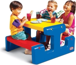 Dječji piknik stol LITTLE TIKES Jr s klupama donosi praktično i stilsko rješenje za zabavu na otvorenom. Zahvaljujući kompaktnim dimenzijama stane na balkon, terasu i u manji vrt, a pritom pruža dovoljno prostora za do četvero djece. Izdržljiv materijal podnosi svakodnevnu upotrebu i vremenske uvjete, dok lako periva površina osigurava brzo održavanje.