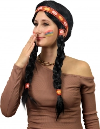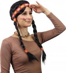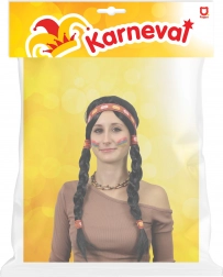 Stilska karnevalska perika s dvostrukim pletenicama i dekorativnom trakom za kosu daje vašem kostimu autentičan indijanski štih. Zahvaljujući dugim crnim pletenicama, dekorativnoj traci i udobnom nošenju idealna je za karneval, tematske zabave i cosplay. Boja vrpci može se razlikovati.
