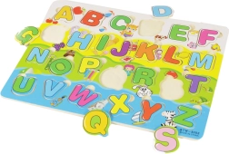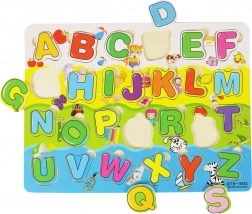 Drvena slagalica namijenjena je za one najmlađe. S ovim sjajnim komadom u obliku abecede sigurno se nećeš dosađivati! Na pojedinim slovima postoji mali otvor za lakše vađenje slova. Sadrži i osnovnu ploču, koja je ispisana simpatičnim slikama. Slagalica također razvija tvoje motoričke sposobnosti. Odličan alat za predškolce i djecu u školi.