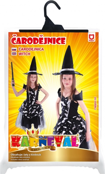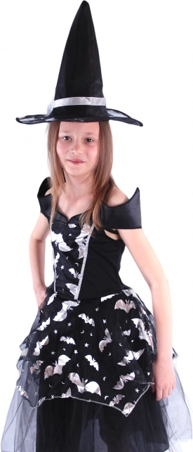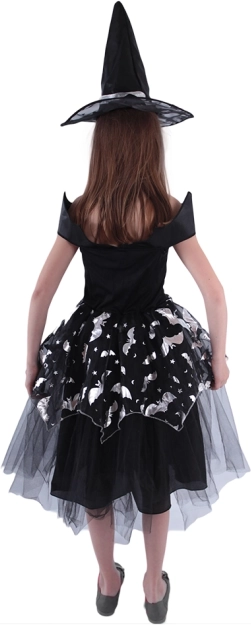 Ovaj čarobni vještičji kostim idealan je izbor za svaku malu damu koja se želi pretvoriti u stiliziranu vješticu! Kostim uključuje crnu haljinu s motivima šišmiša, srebrnim detaljima i pufastom suknjom, koja haljini daje pravu dozu elegancije i tajanstvenosti.
