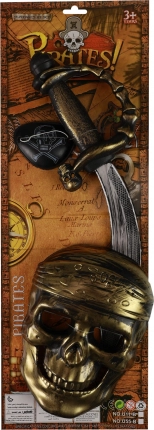 Stilski piratski set za male pustolove sadrži zlatnu masku s gumicom, povez za oko i plastični mač s brončanom drškom. Lagani i izdržljivi PVC materijal idealan je za karneval, zabave i igre uloga kod kuće.