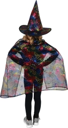 Ovaj elegantni dječji čarobnjački kostim pruža trenutačni efekt – dovoljno je obući plašt, staviti šešir i čarobna preobrazba je gotova. Sjajne, kolor-mijenjajuće paukove mreže daju plaštu i šeširu izražajan izgled i odlično dolaze do izražaja na zabavi, povorci ili na fotografijama.