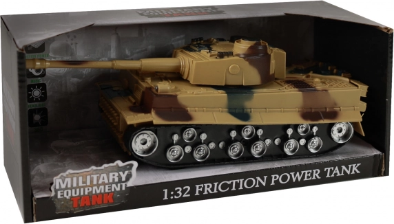 Zahvaljujući frikcijskom (inercijskom) mehanizmu tenk se nakon povlačenja pokreće naprijed. Praktično mjerilo 1:32 odlično leži u ruci.