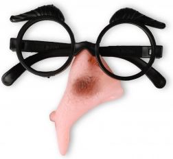 Nos je izrađen od elastične gume za bolje prilagođavanje, a naočale od izdržljivog PVC-a, pa dobro stoje na licu i podnose i življu zabavu.