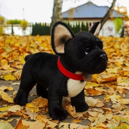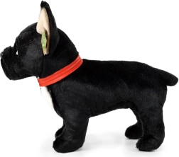 Ovaj crni francuski buldog s crvenom ogrlicom ističe se detaljno izrađenim crtama i mekanom površinom koja jednostavno poziva na maženje. Zahvaljujući ručnoj izradi djeluje vrlo realistično i postat će omiljeni pratitelj djece već od rođenja.