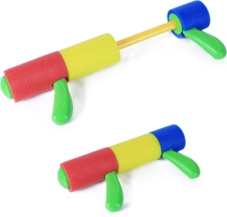 Mekani pjenasti materijali omogućuju lako upijanje vode i prskanje ciljeva. Vodeni pištolj je šaren, što doprinosi atraktivnom izgledu igračke. Zahvaljujući jednostavnom pumpnom mehanizmu, lako ga je koristiti i najmanjoj djeci.