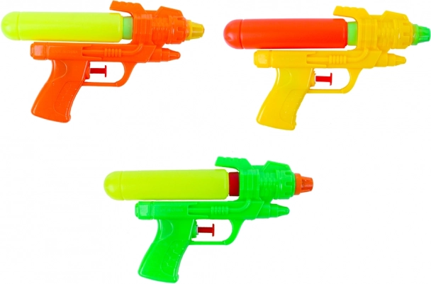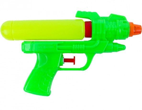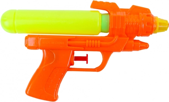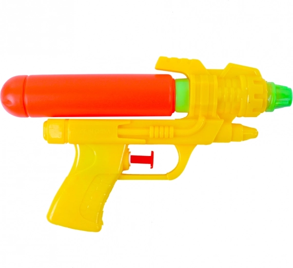Vodeni pištolj je dostupan u tri atraktivne varijante boja: narančasta, žuta i zelena.