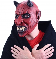 Visoko detaljna lateks maska s realističnim elementima vraga, uključujući crne rogove i oštre zube, koji pridonose zastrašujućoj autentičnosti.