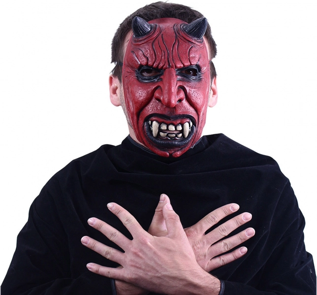 Zastrašujuća vražja maska od lateksa, idealna za Noć vještica i karnevale. Udobno nošenje. Dobno ograničenje 14+.