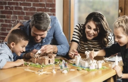 - Ciglice, osnovna ploča, slikovne upute, papirnate figurice, dekorativni dodaci, ljepilo