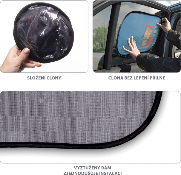 Praktična mrežasta sunčana sjenila za auto s UV zaštitom UPF 30+ štite djecu i suputnike od jakog sunca. Zahvaljujući ojačanom okviru ugradnja je brza i stabilna, sklapanje je jednostavno, a nakon spremanja sjenila su vrlo kompaktna. Pakiranje sadrži 2 komada.