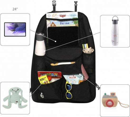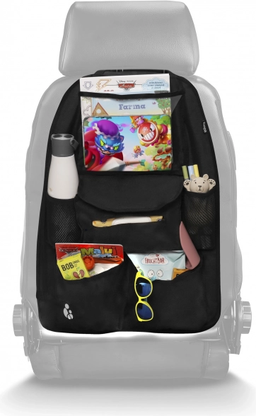 Učinite vožnju automobilom ugodnijom s ovim organizerom, dizajniranim za maksimalnu udobnost i red. Sadrži zaštitni džep za tablet, kompatibilan s tabletima do veličine 24 cm, koji omogućuje vašoj djeci gledanje omiljenih crtića tijekom vožnje.
