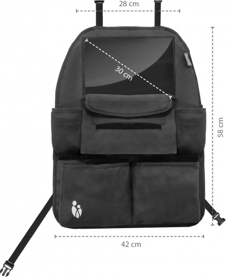 Pametni organizer za sjedalo ne samo da štiti tablet i omogućuje mu lak pristup, već također nudi obilni prostor za pohranu boca, maramica i igračaka.