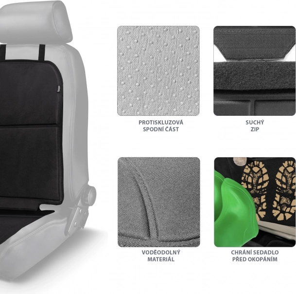 Zaštita sjedala ispod autosjedalice idealan je izbor za očuvanje čistog i neoštećenog interijera vašeg automobila. Zahvaljujući protukliznoj obradi dječja sjedalica ostaje čvrsto na mjestu, dok profilirani donji dio učinkovito sprječava širenje nečistoća i oštećenje sjedala.