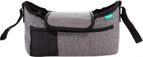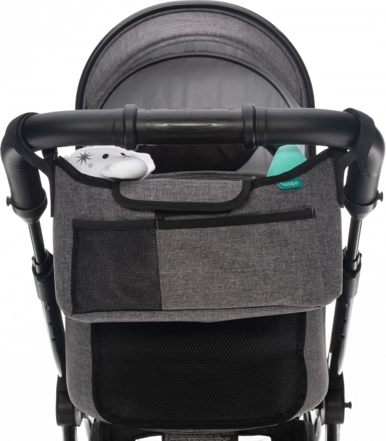 Organizator za kolica PLUS, zahvaljujući svojoj savršenoj veličini, prikladan je za svaka kolica. Vrlo je prostran i sadrži do 6 džepova koji odgovaraju potrebama i zahtjevima svake moderne mame. Naravno, tu je i prednji džep za mobitel te džep za sitnice. U stražnjem dijelu organizatora nalazi se veći mrežasti džep za smještaj časopisa. Glavni džep je osmišljen tako da se sa strane mogu smjestiti boce. Ugradnja je jednostavna i brza pomoću kukica s čičak-trakom.