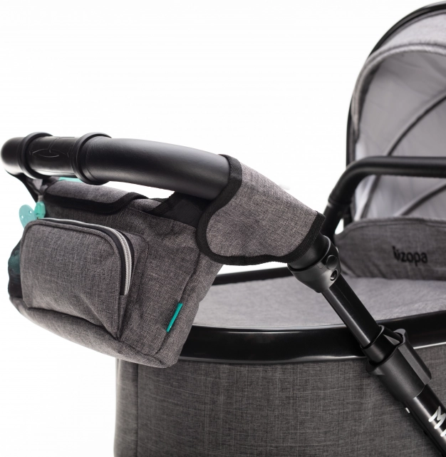 Opis: Organizer za potrepštine koji je vrlo pregledan, praktičan i šik, drži sve potrebne stvari na svom mjestu. Podijeljen je na tri dijela: središnji veći džep s patentnim zatvaračem i bočne izolirane otvore za boce s napicima. Organizer je izrađen od prozračnog, lako čistivog materijala.
