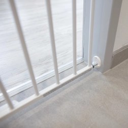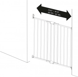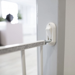 Sigurnosna pregrada Simply idealno je rješenje za osiguranje prolaza, hodnika te gornjeg ili donjeg dijela stubišta. Ugrađuje se fiksno u zid pomoću tiplova i vijaka, a zahvaljujući središnjem mehanizmu za širenje lako je prilagodite širini otvora od 60 do 97 cm. Otvaranje jednom rukom olakšava svakodnevnu upotrebu roditeljima i skrbnicima.