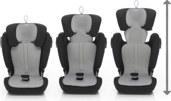 Dvodijelno rješenje omogućuje precizno podešavanje prema visini naslona za glavu – podloga doista raste s autosjedalicom skupine 2/3. Učvršćivanje EASY FIT pomoću vezice i oka brzo je i stabilno, pa podloga ostaje na mjestu. Dio za glavu oblikovan je za smanjenje znojenja i tijekom spavanja. Radi jednostavnog održavanja umetak se može prati ručno.