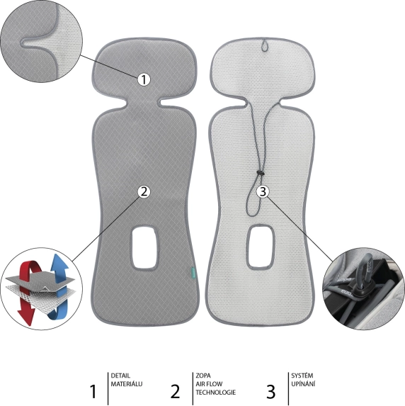 Ljetna podloga Zopa Breeze dizajnirana je za maksimalnu udobnost malih putnika. Prozračna 3D tkanina s tehnologijom ZOPA AIR FLOW omogućuje cirkulaciju zraka između djeteta i sjedalice, čime značajno smanjuje znojenje i rizik od pregrijavanja. Oblikovani naslon za glavu pomaže odvoditi toplinu i tijekom sna.