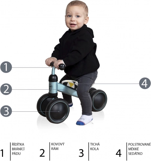 Dječje guralice Zooter Mint s čvrstom konstrukcijom i tihim kotačima, idealne za djecu težine 18-20 kg.
