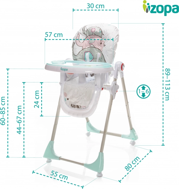 Dječju hranilicu Monti s veselim motivima životinja lako prilagodite potrebama svog djeteta od 6 mjeseci do 3 godine ili do 15 kg težine, i to podešavanjem ne samo visine cijele hranilice, nego i nagiba naslona leđa i oslonca za noge, uključujući i podešavanje udaljenosti pladnja. Sve to vašem djetetu osigurava udobno i sigurno sjedenje pri jelu i drugim aktivnostima.