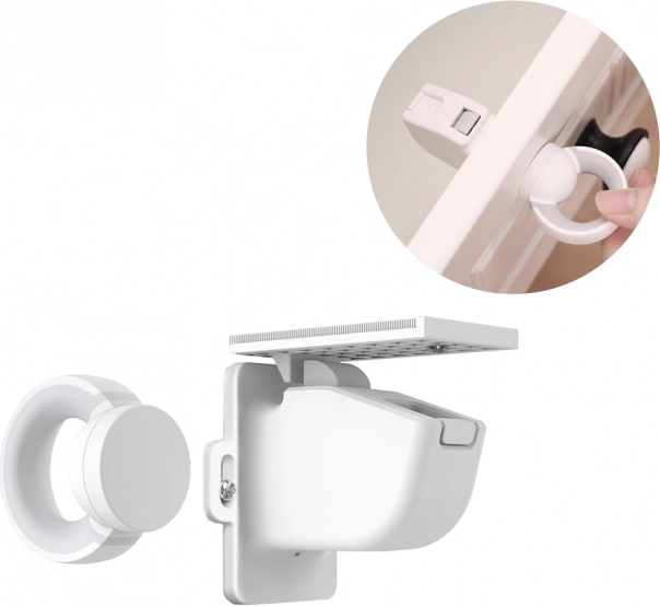 • Magnetna brava ima i praktičnu sigurnosnu kopču. Ako ormarić koristite neprekidno, npr. u kuhinji tijekom kuhanja, kopčom privremeno isključite bravu i ponovno je aktivirate kada želite da ormarić bude netaknut i osiguran od djece.