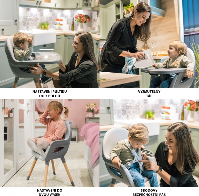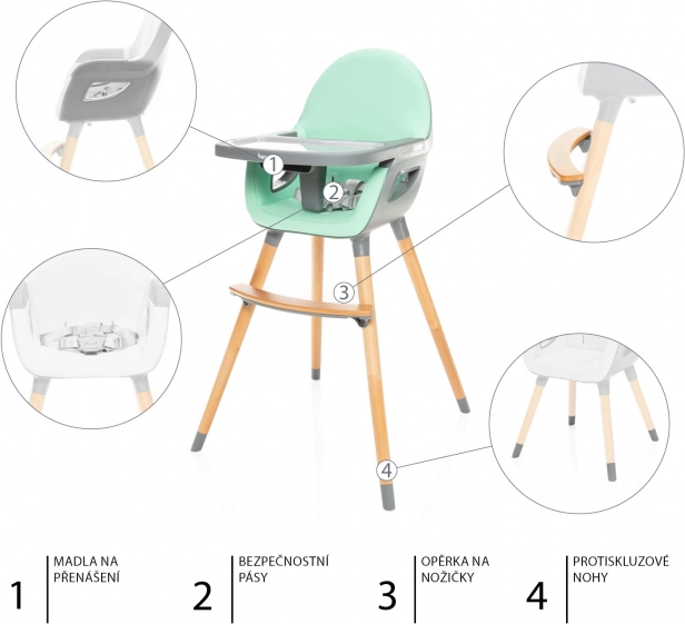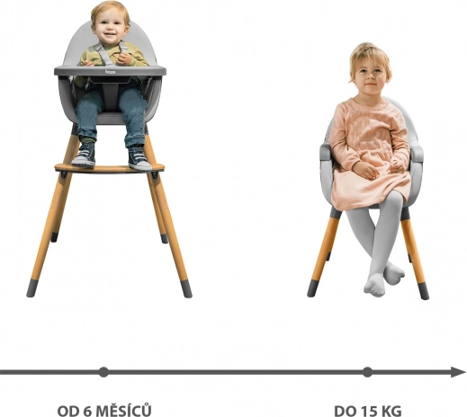Sigurna, praktična i moderna – to je dječja stolica ZOPA Dolce2. Prikladna je za djecu od 6 mjeseci do 15 kg. Kombinacija drva, kvalitetne plastike i mekih presvlaka čini stolicu udobnim pomoćnikom za svaku prigodu. Na izbor je nekoliko varijanti boja u minimalističkom dizajnu, zahvaljujući čemu se stolica lako uklapa u bilo koji interijer. Može se koristiti kao klasična hranilica ili, nakon snižavanja visine i uklanjanja pladnja, kao naslonjač za dječju sobu.