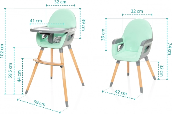 Dječja stolićica Dolce 2, Ice Green/Grey
